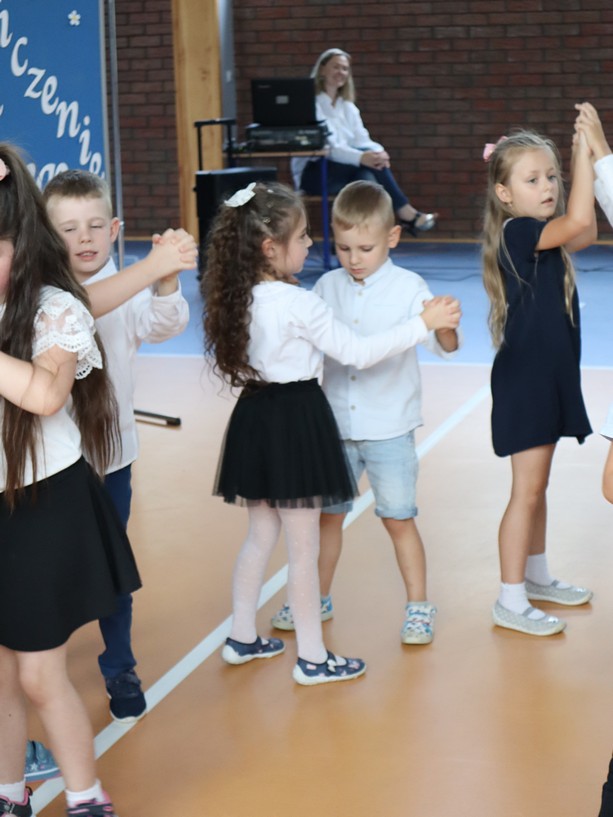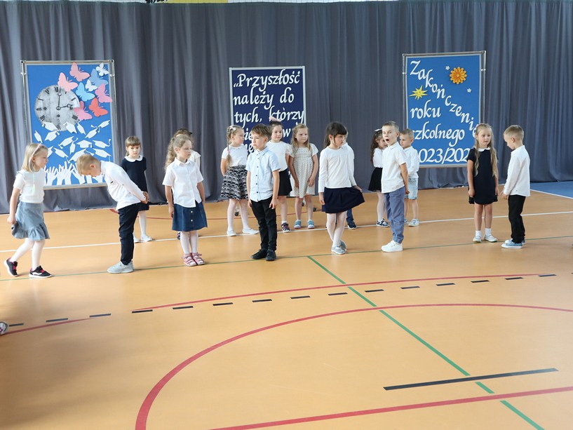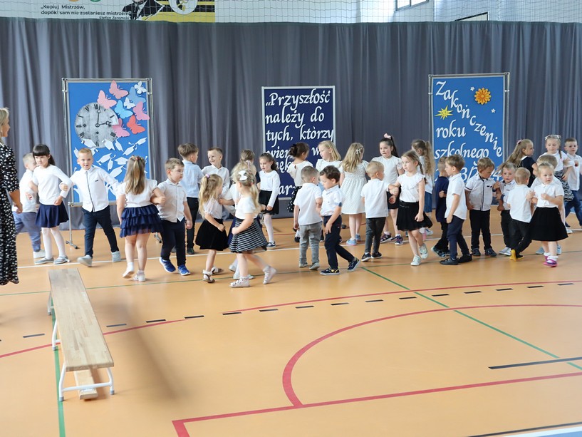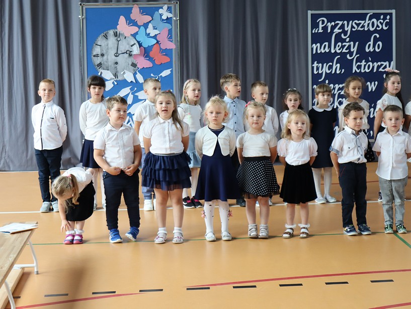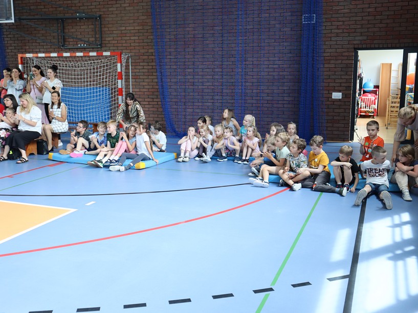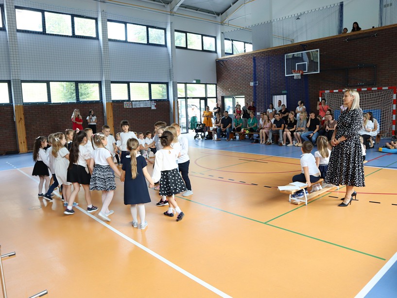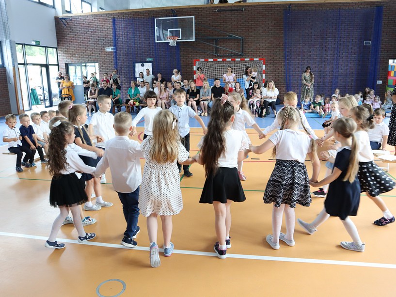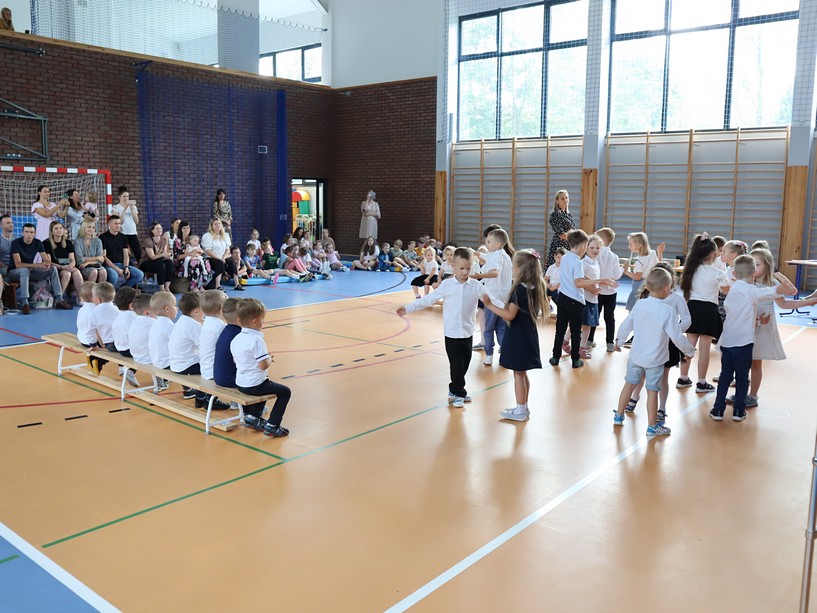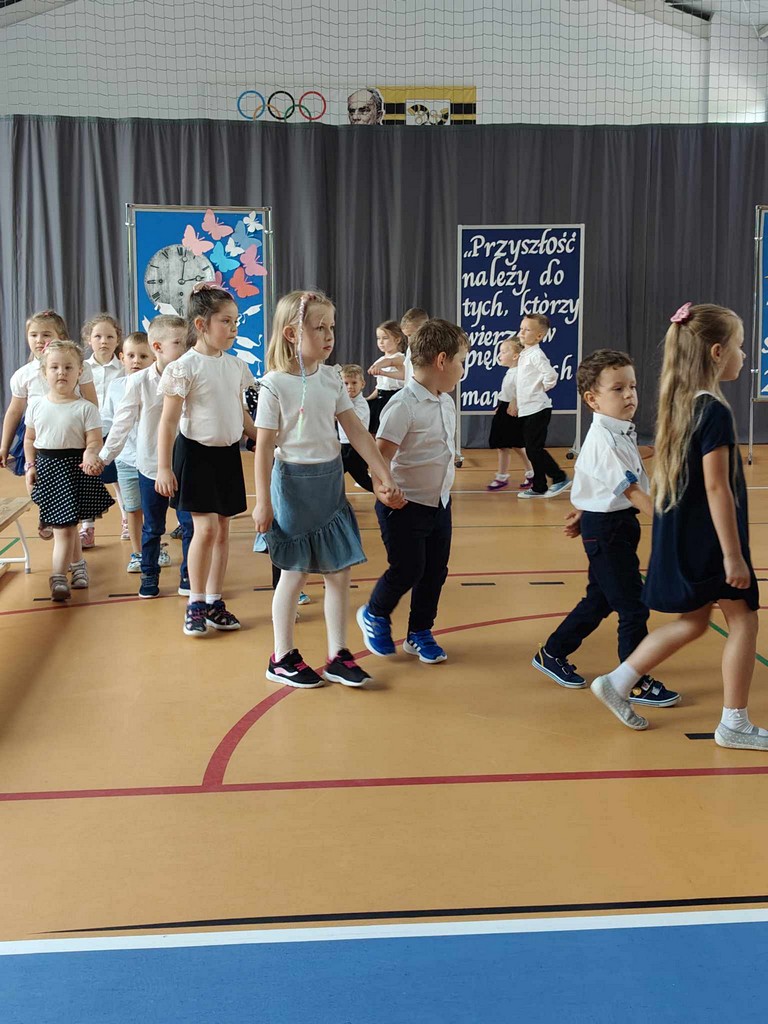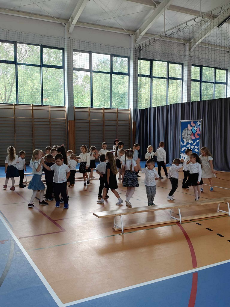 Dzieci rozpoczęły pięknym polonezem, który składał się z wielu elementów. Następnie nadszedł czas na wiersze, piosenki i tańce. Zgromadzeni rodzice, nauczyciele i koledzy z klas 1-3 z uśmiechem obserwowali popisy najmłodszych i nagradzali je wielkimi brawami. Pani Dyrektor Halina Toboła zwróciła uwagę na wspaniałą współpracę między przedszkolem i zerówką oraz świetne zgranie w tańcu.
