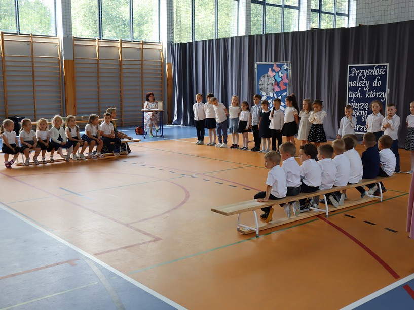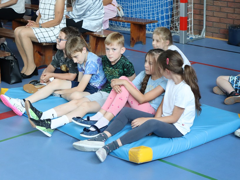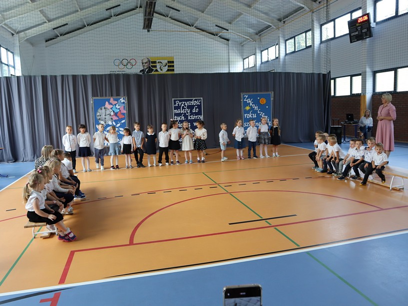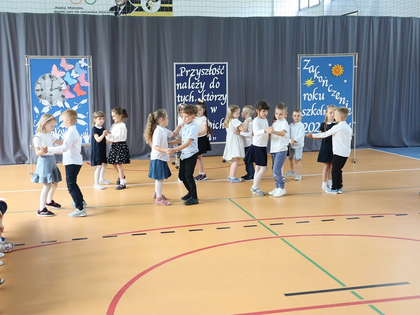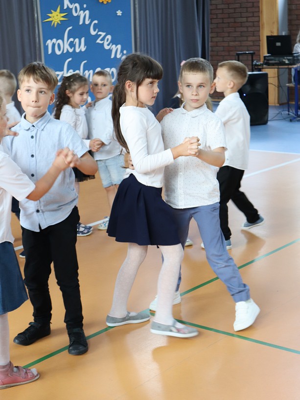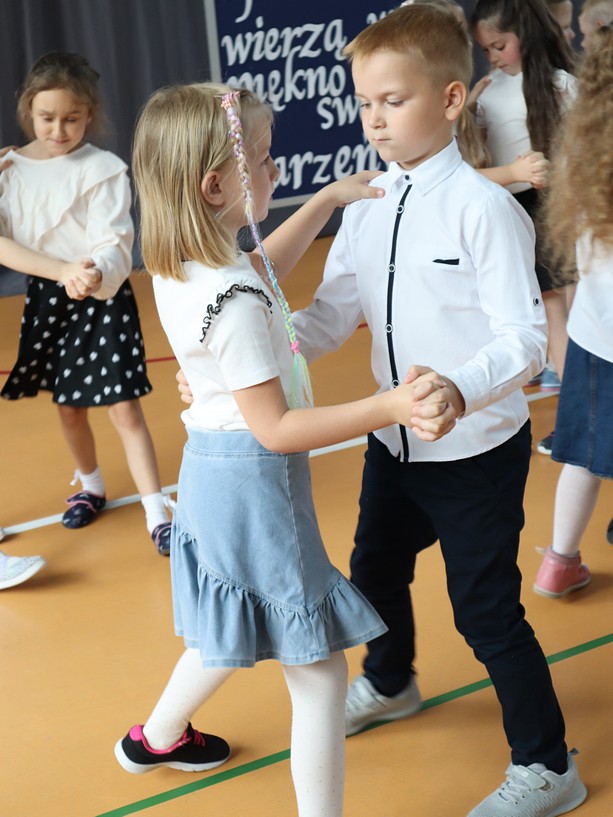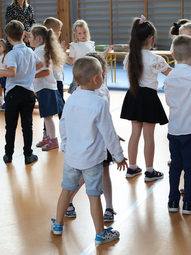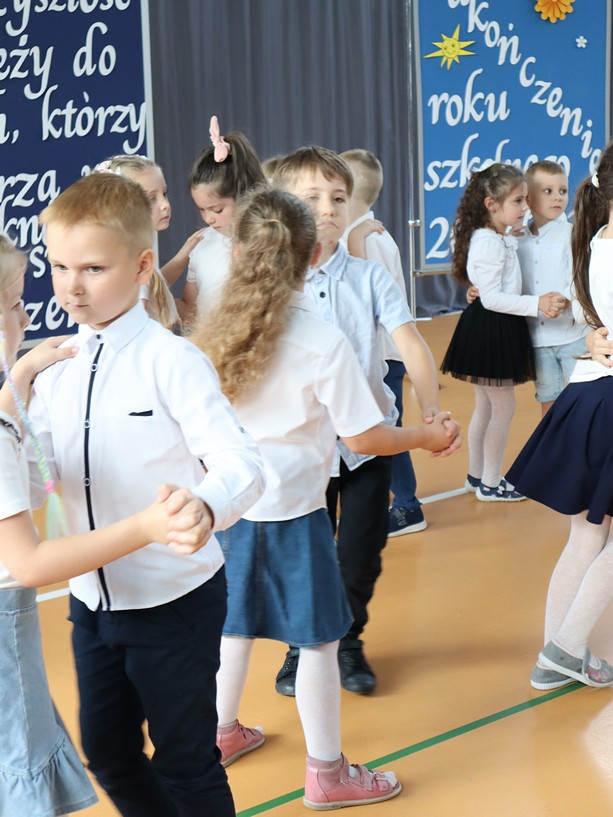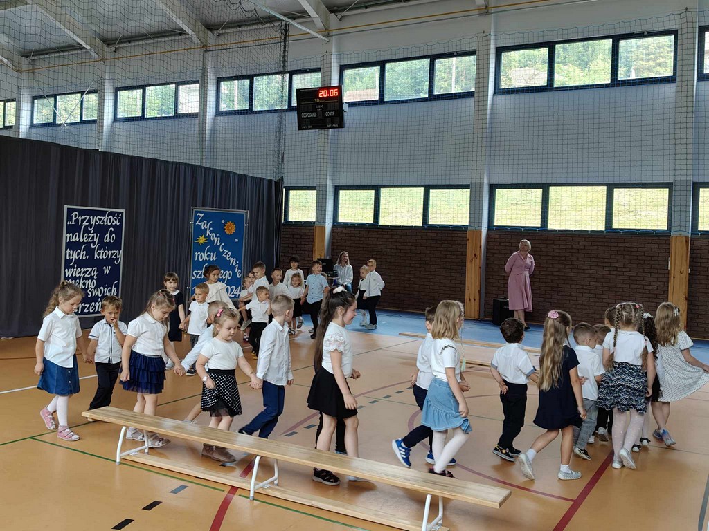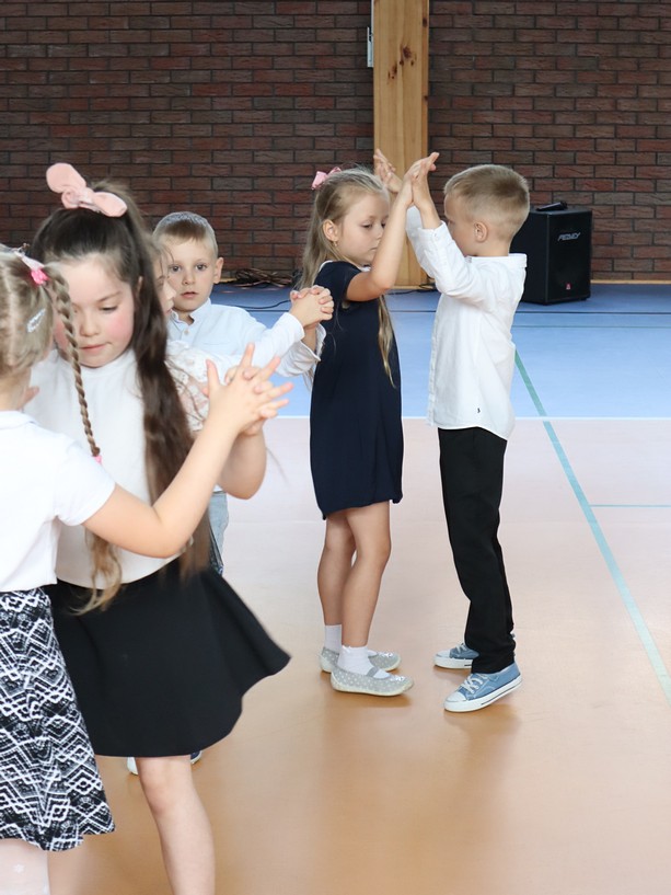 Dzieci rozpoczęły pięknym polonezem, który składał się z wielu elementów. Następnie nadszedł czas na wiersze, piosenki i tańce. Zgromadzeni rodzice, nauczyciele i koledzy z klas 1-3 z uśmiechem obserwowali popisy najmłodszych i nagradzali je wielkimi brawami. Pani Dyrektor Halina Toboła zwróciła uwagę na wspaniałą współpracę między przedszkolem i zerówką oraz świetne zgranie w tańcu.