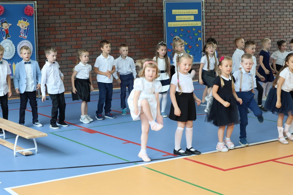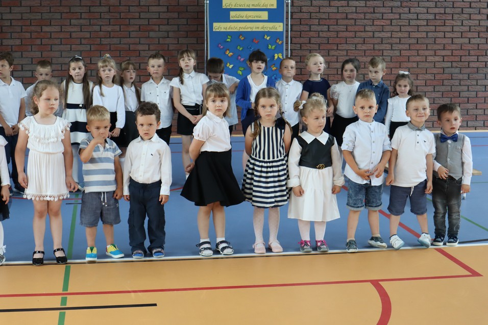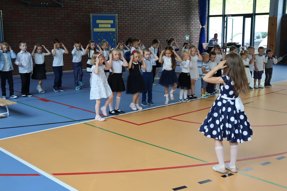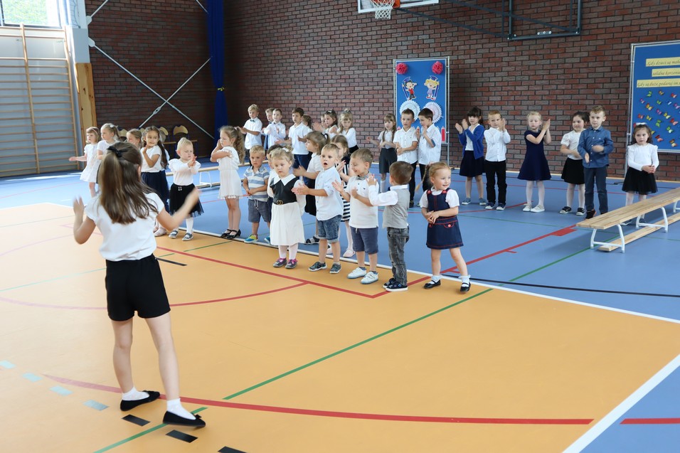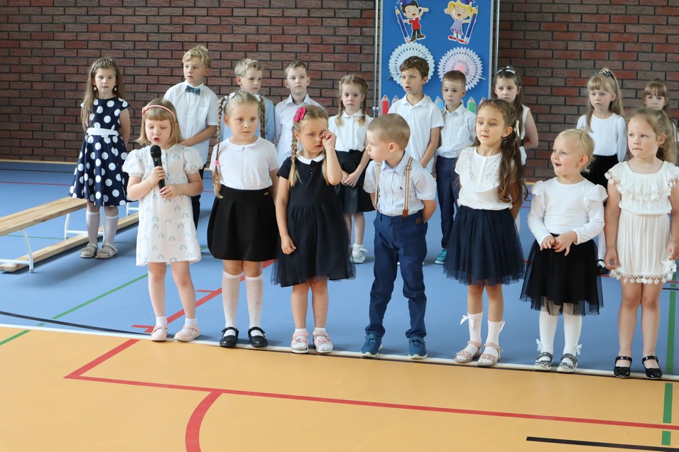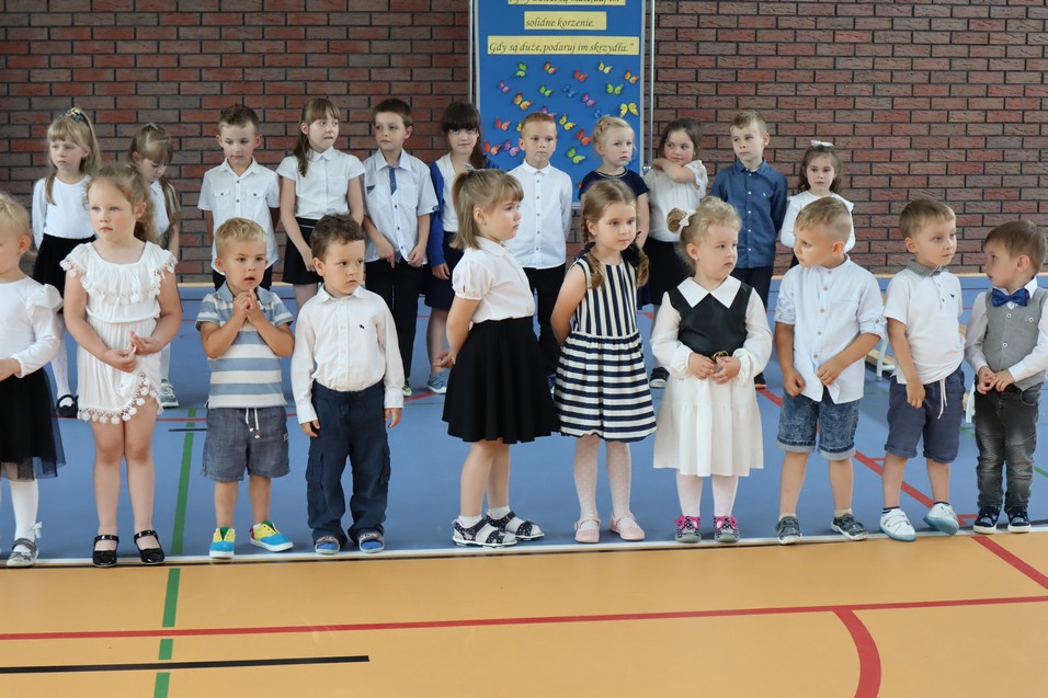 Po krótkiej przemowie pani Dyrektor Haliny Toboły miała miejsce część artystyczna. Dzieci z przedszkola i oddziału przedszkolnego śpiewały, tańczyły i pięknie recytowały. Starszaki w humorystyczny sposób pożegnały „zerówkę”, by od nowego roku rozpocząć naukę w pierwszej klasie.
