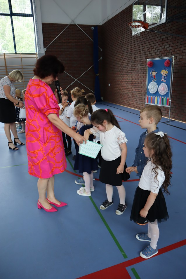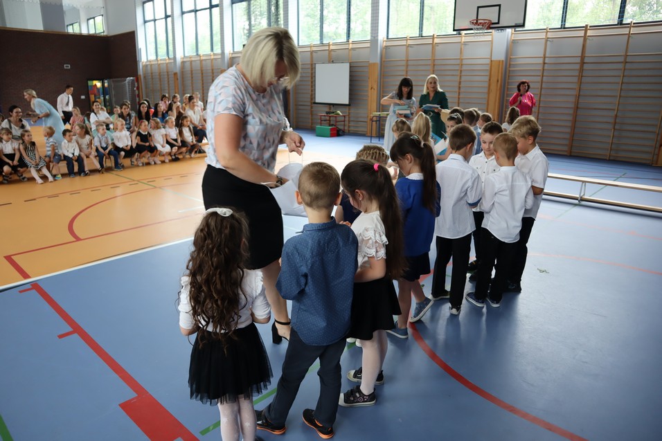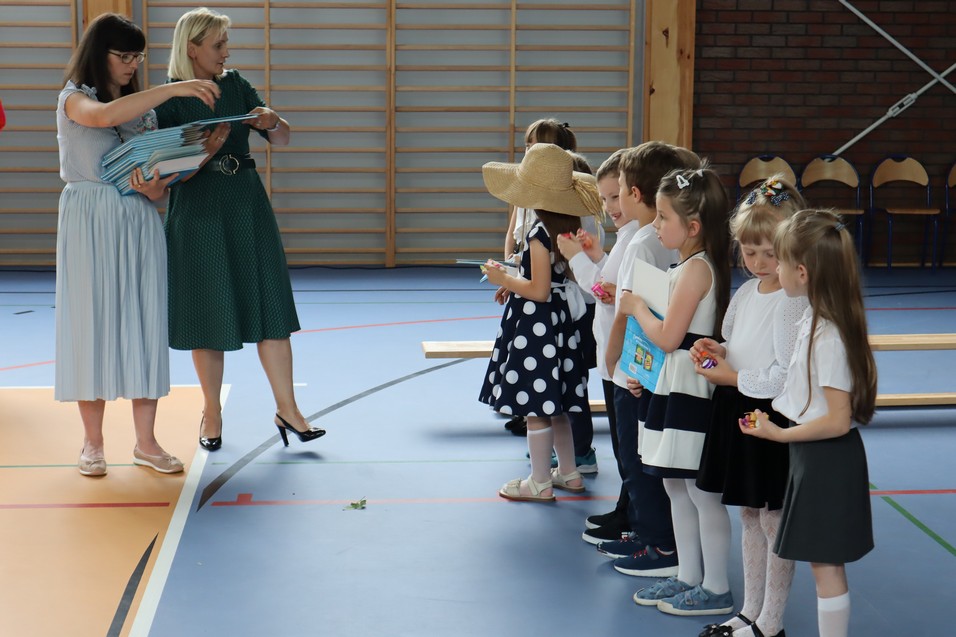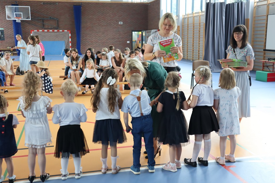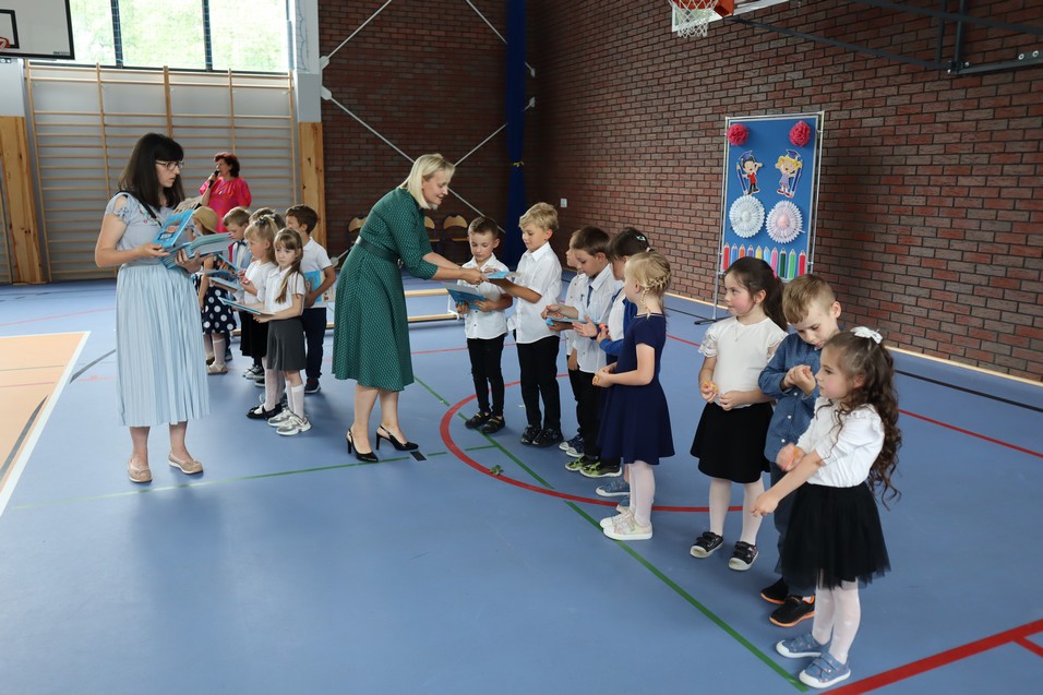 Następnie dzieci otrzymały upominki od pani Dyrektor oraz książki i dyplomy od Rady Rodziców. Na koniec nagrody otrzymali także wychowawcy, nauczyciele i pracownicy. Nie zabrakło wzruszeń i ciepłych słów. W tak rodzinnej atmosferze miło jest zakończyć rok szkolny. Do zobaczenia po wakacjach!
