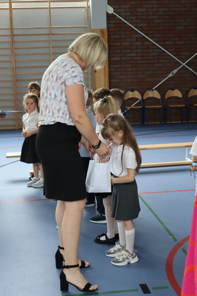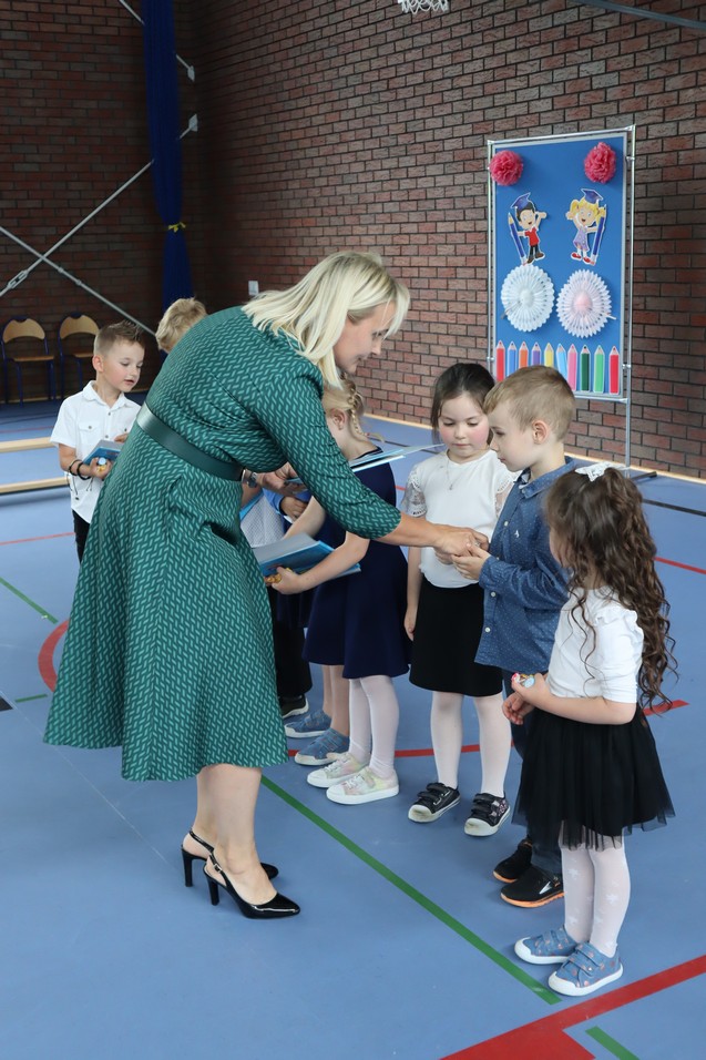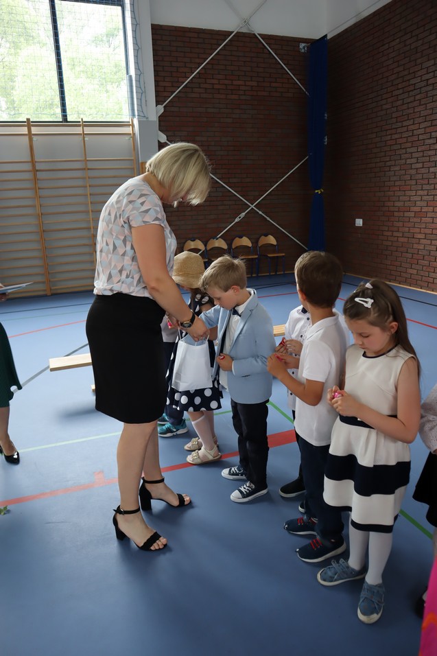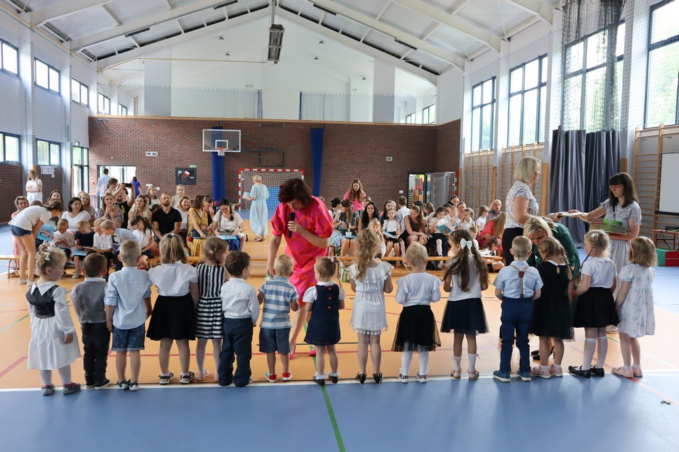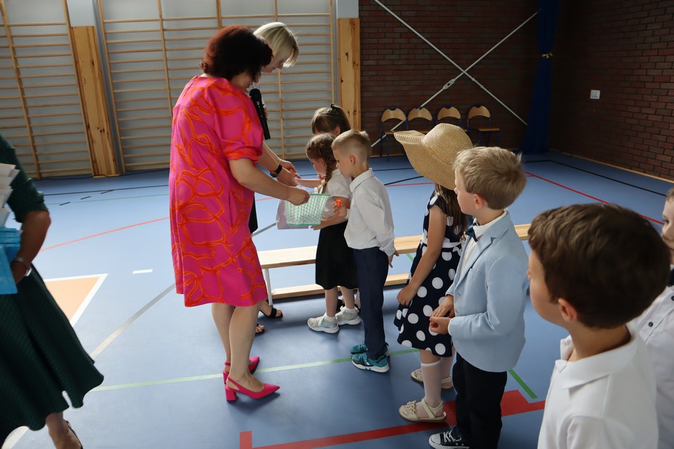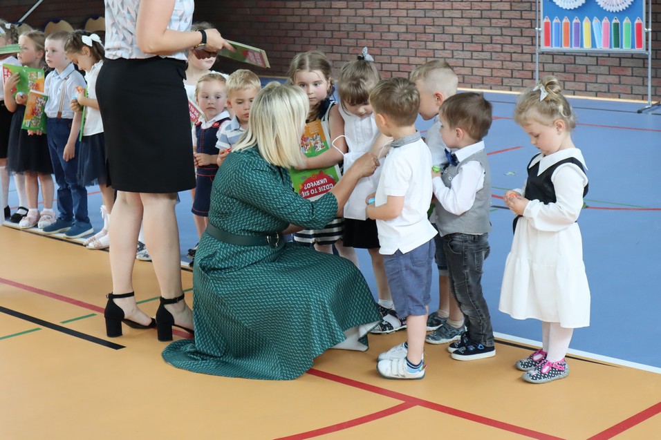 Następnie dzieci otrzymały upominki od pani Dyrektor oraz książki i dyplomy od Rady Rodziców. Na koniec nagrody otrzymali także wychowawcy, nauczyciele i pracownicy. Nie zabrakło wzruszeń i ciepłych słów. W tak rodzinnej atmosferze miło jest zakończyć rok szkolny. Do zobaczenia po wakacjach!