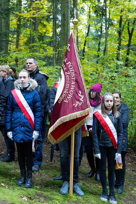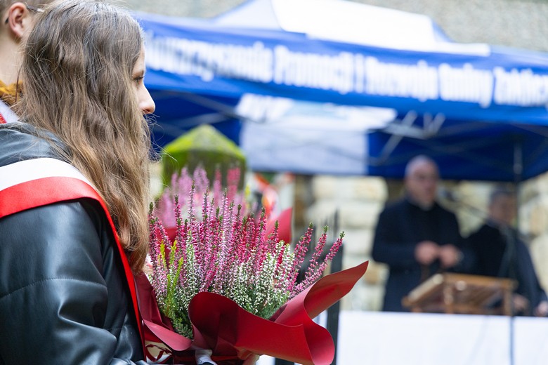 Uroczystość rozpoczęła się modlitwą różańcową. Po niej wszyscy, w tym również nasi uczniowie, złożyli kwiaty i znicze pod obeliskiem. Najważniejszym momentem była oczywiście msza święta w intencji poległych. Podczas kazania ksiądz zwrócił uwagę, jak ważna i budująca jest obecność młodzieży, która z zaangażowaniem kultywuje tradycję rozpoczętą początku lat 90-tych ubiegłego wieku.