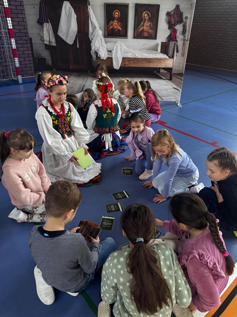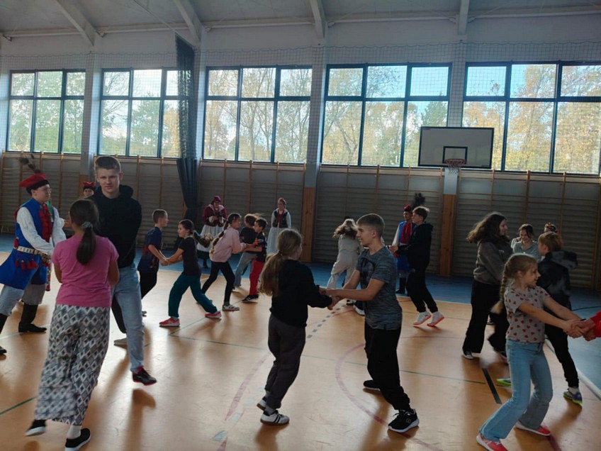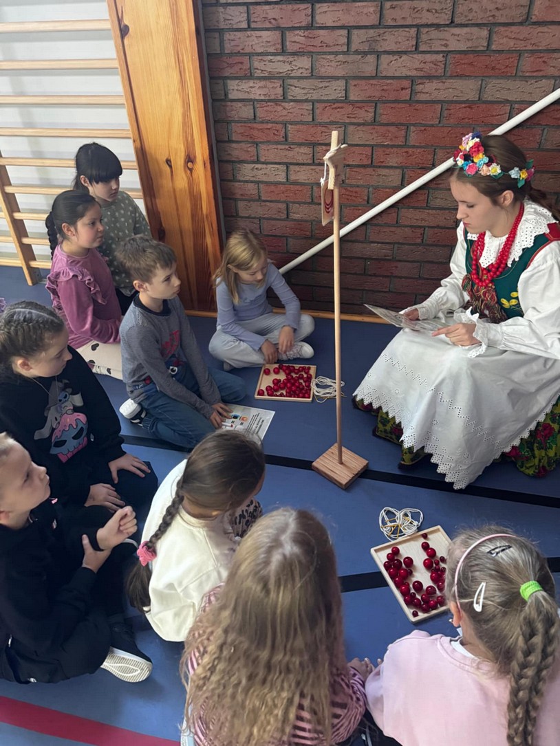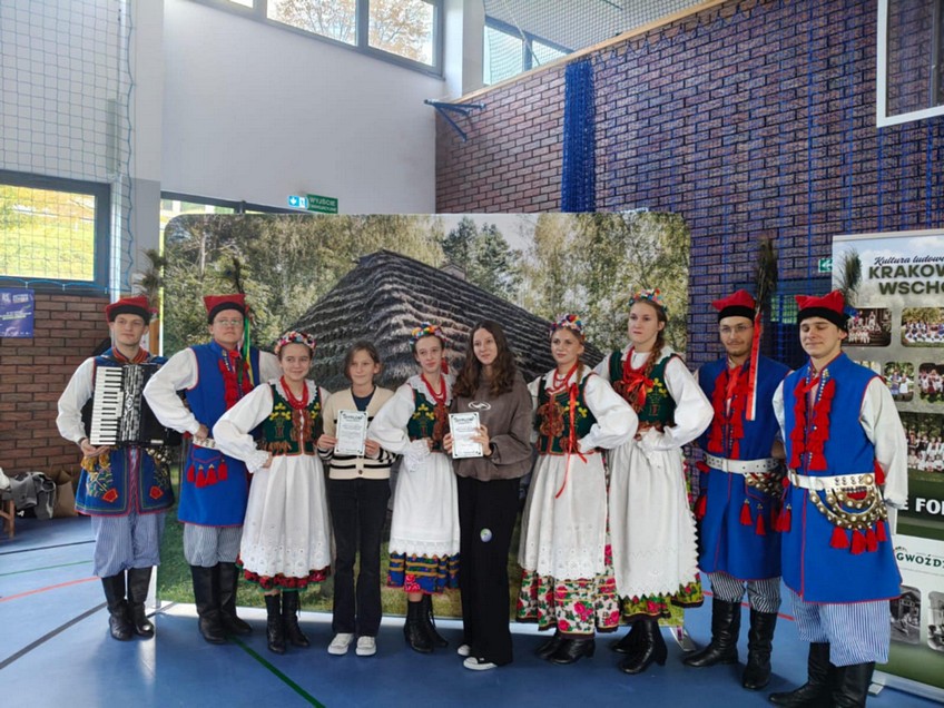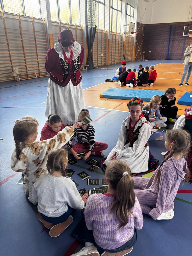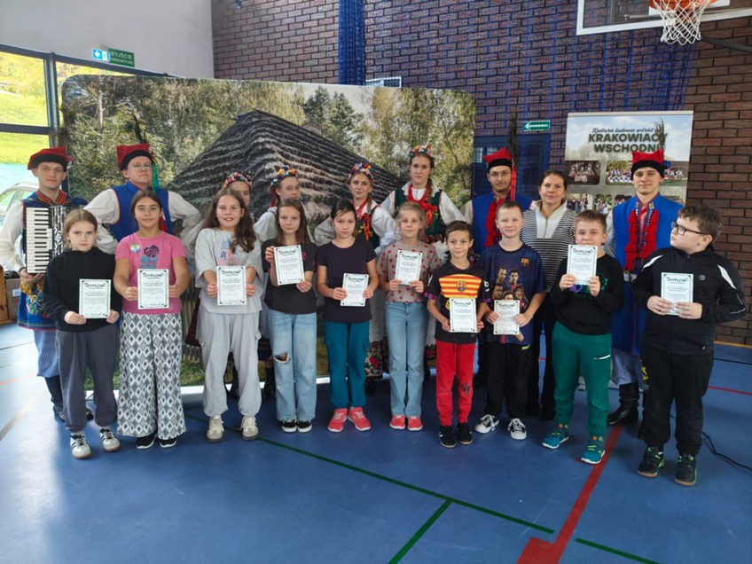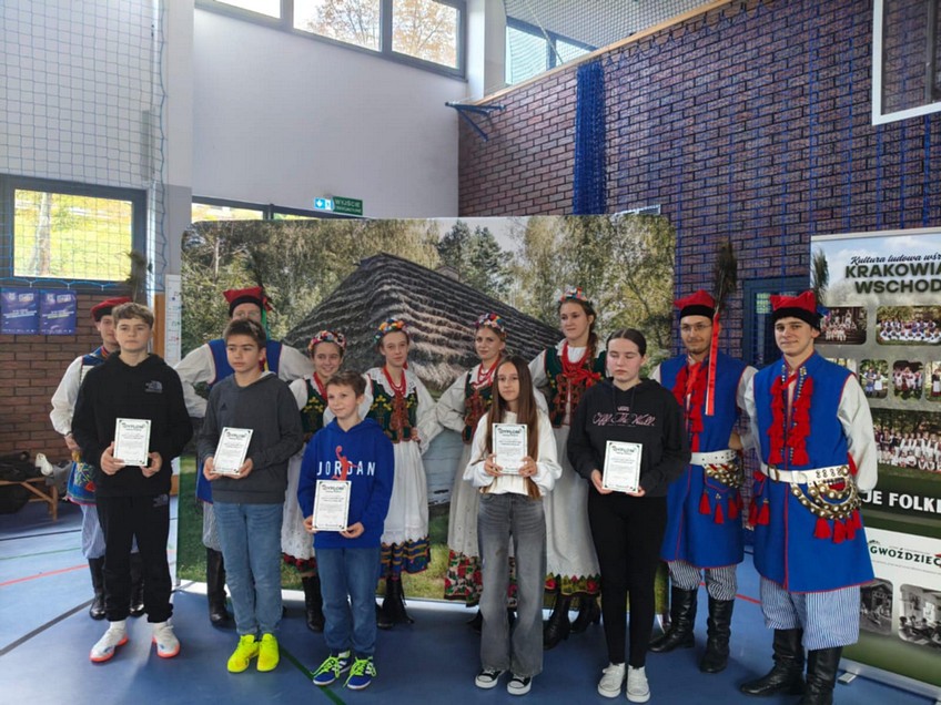 W poniedziałek 13.10.2025r. w naszej szkole odbyły się bardzo ciekawe zajęcia w ramach Edukacji kulturalnej Zakliczyńskiego Centrum Kultury w placówkach oświatowych. Ministerstwo Edukacji Narodowej przyznało grant dla Zakliczyńskiego Centrum Kultury na realizację projektu z zakresu edukacji kulturalnej adresowanej do dzieci i młodzieży szkół podstawowych. Projekt jest realizowany pod nazwą „Kultura ludowa wśród nas – Krakowiacy Wschodni”. Zajęcia przeprowadziła autorka i koordynatorka projektu Ewelina Siepiela wraz z młodzieżą należącą do Zespołu Folklorystycznego „Gwoździec”.