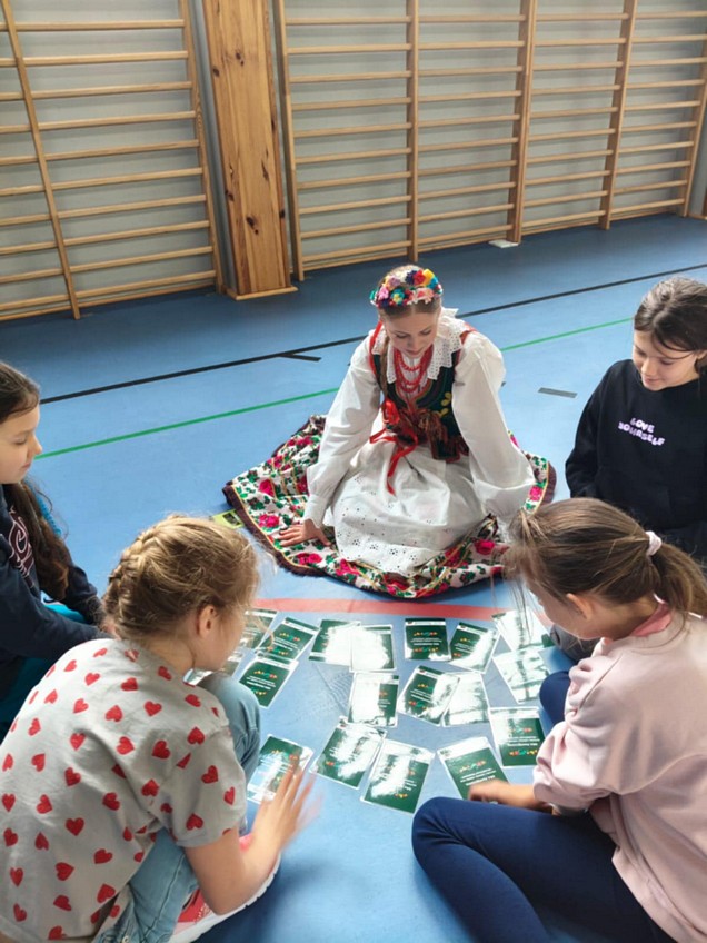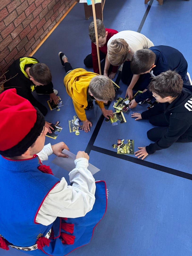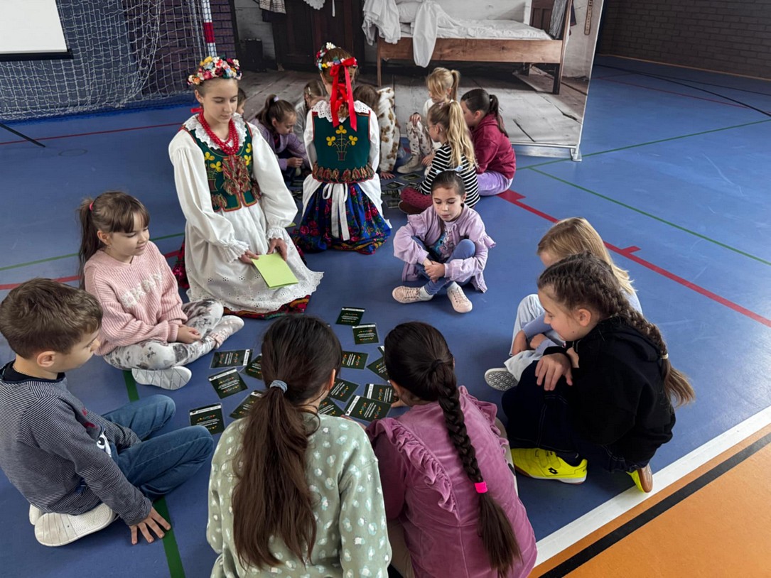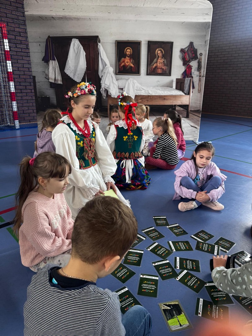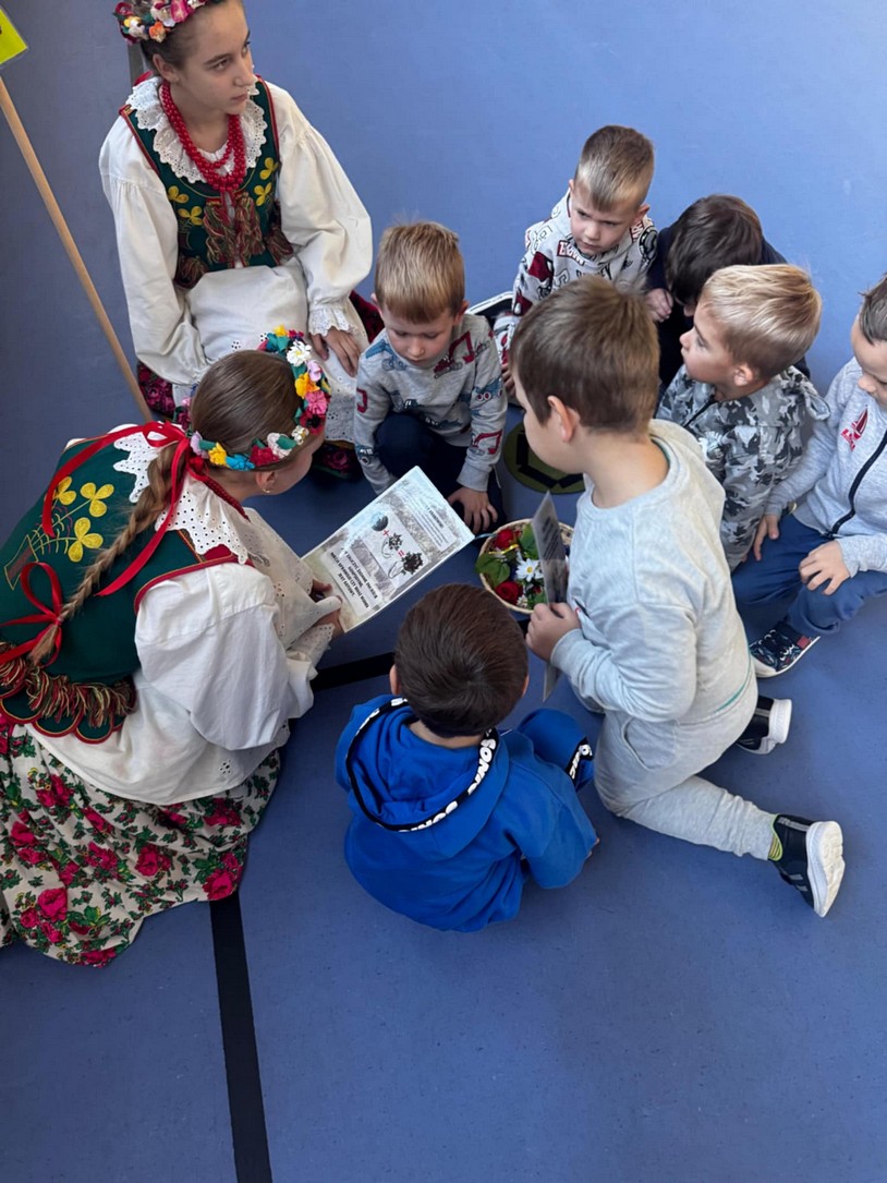 W poniedziałek 13.10.2025r. w naszej szkole odbyły się bardzo ciekawe zajęcia w ramach Edukacji kulturalnej Zakliczyńskiego Centrum Kultury w placówkach oświatowych. Ministerstwo Edukacji Narodowej przyznało grant dla Zakliczyńskiego Centrum Kultury na realizację projektu z zakresu edukacji kulturalnej adresowanej do dzieci i młodzieży szkół podstawowych. Projekt jest realizowany pod nazwą „Kultura ludowa wśród nas – Krakowiacy Wschodni”. Zajęcia przeprowadziła autorka i koordynatorka projektu Ewelina Siepiela wraz z młodzieżą należącą do Zespołu Folklorystycznego „Gwoździec”.