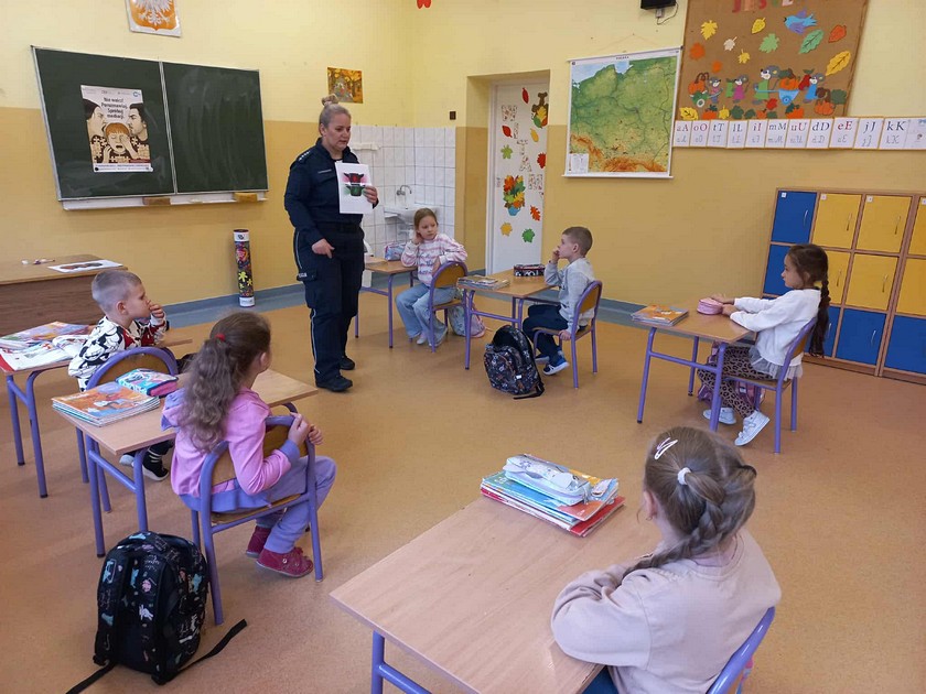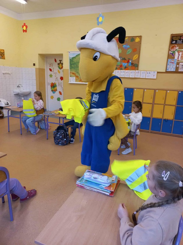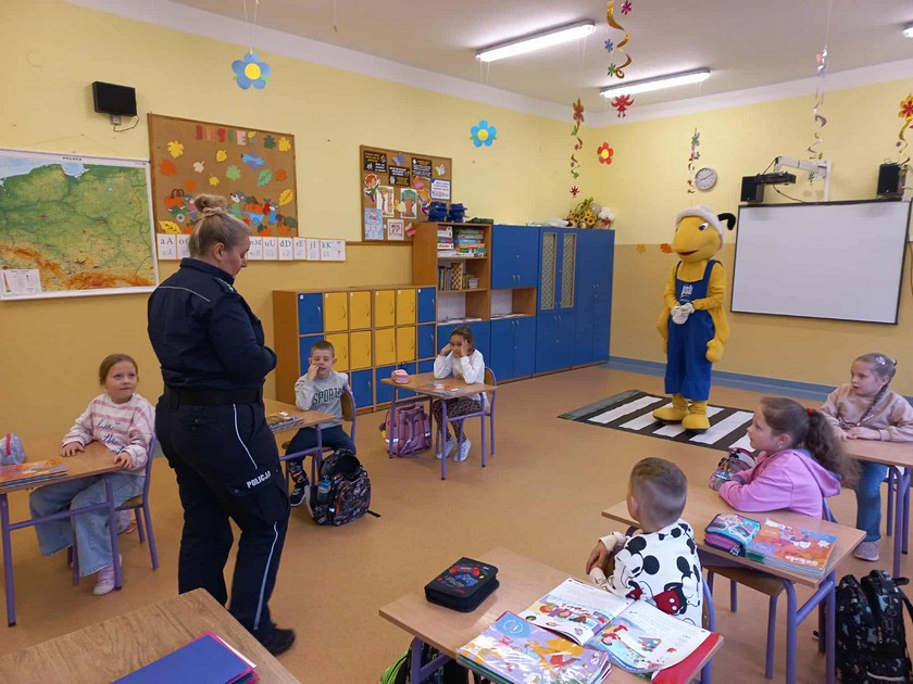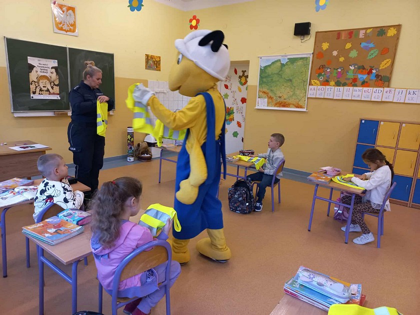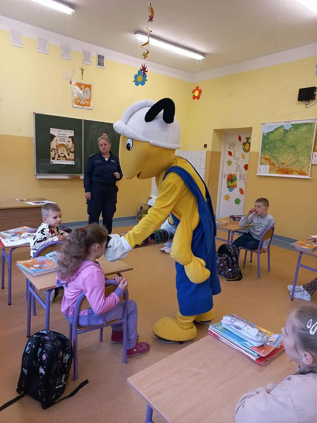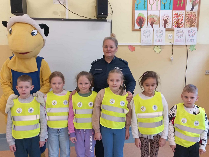 W naszej klasie 1 odbyło się bardzo ciekawe spotkanie. Odwiedziła nas pani policjantka oraz pan reprezentujący sklep PSB ,, Mrówka”. Pani policjantka opowiadała nam o zasadach bezpieczeństwa w drodze do szkoły i ze szkoły. Przypomniała, jak prawidłowo przechodzić przez jezdnię oraz dlaczego warto nosić odblaski. Odpowiedziała też na wiele naszych pytań.