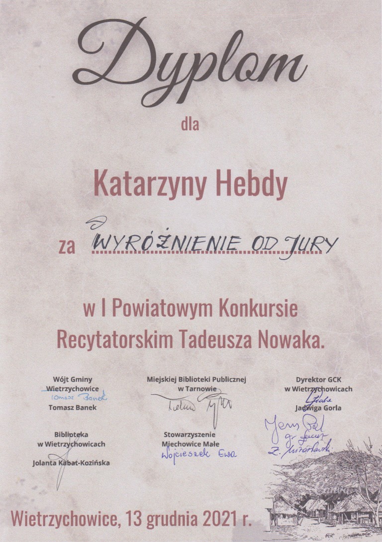 Dyplom dla Katarzyny Hebdy