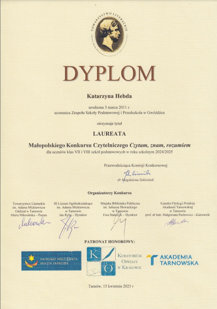 Jacek Łośko 06 czerwiec 2025 Odsłony: 434 Katarzyna Hebda laureatką Małopolskiego Konkursu Czytelniczego
