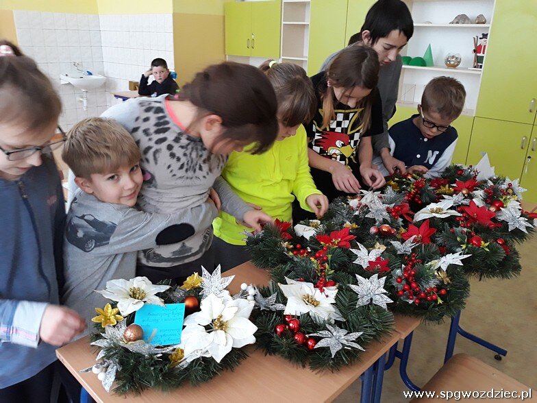 W ten właśnie sposób uczymy nasze dzieci i młodzież wrażliwości na potrzeby drugiego człowieka. Wszystkie klasy wraz z przedszkolakami wykonały stroiki dla osób chorych i samotnych z naszej miejscowości. Wolontariusze SKW po przedstawieniu „Dziewczynki z zapałkami” podczas świątecznego spotkania zanieśli te stroiki i odwiedzili wszystkie osoby samotne.