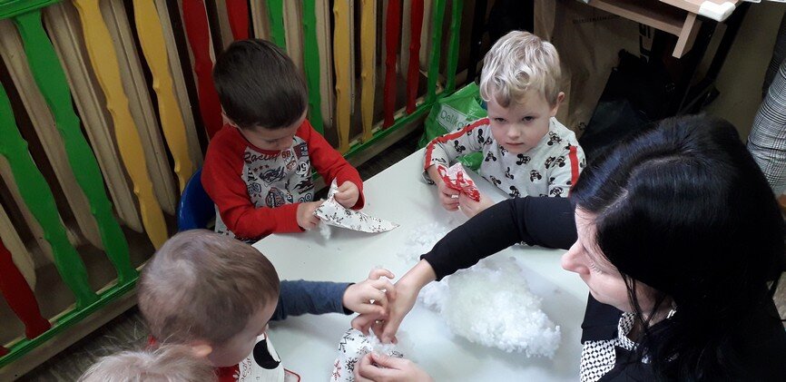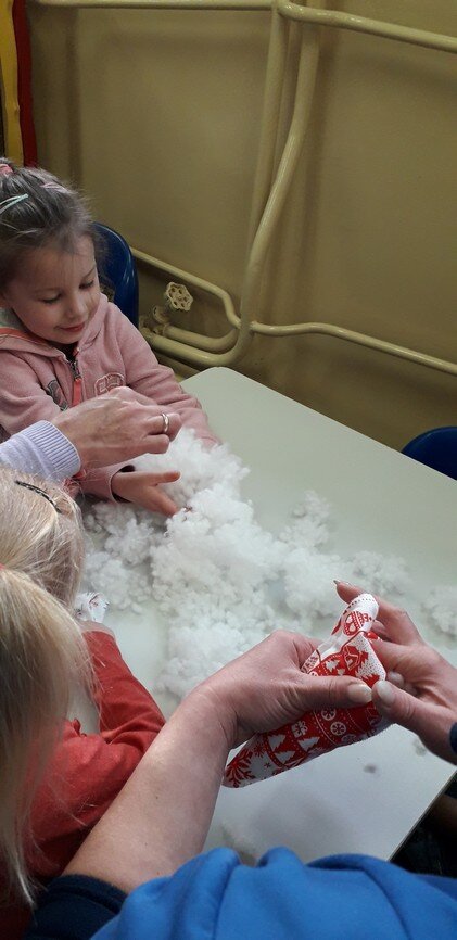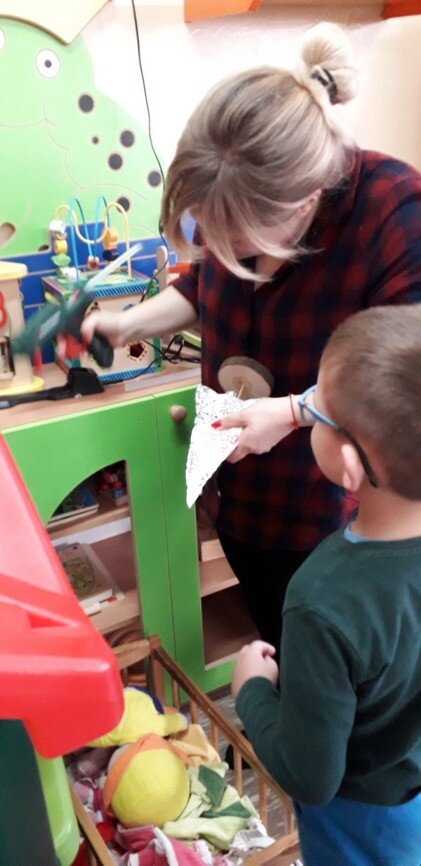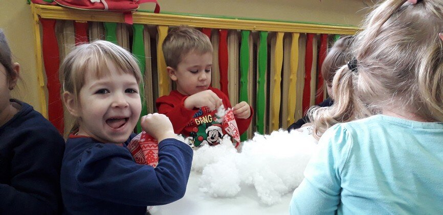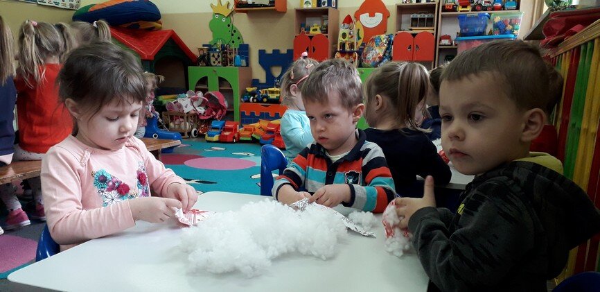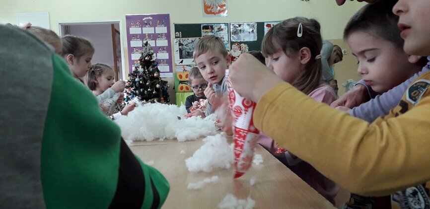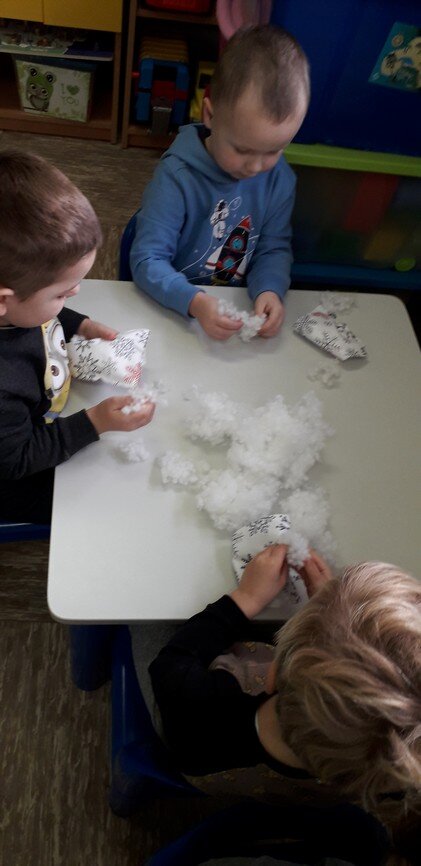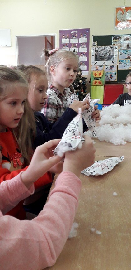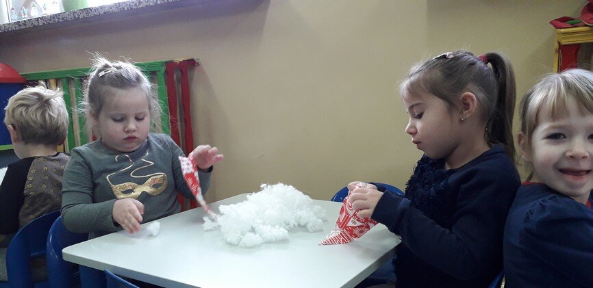 Mimo ciężkiej pracy, którą trzeba było wykonać, aby napełnić choineczkę pluszem, wszystkie przedszkolaki dzielnie pracowały. Niezbędne materiały do ich wykonania otrzymaliśmy od pani Gosi, za co bardzo serdecznie dziękujemy.