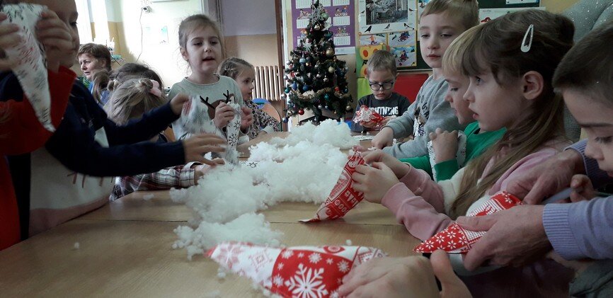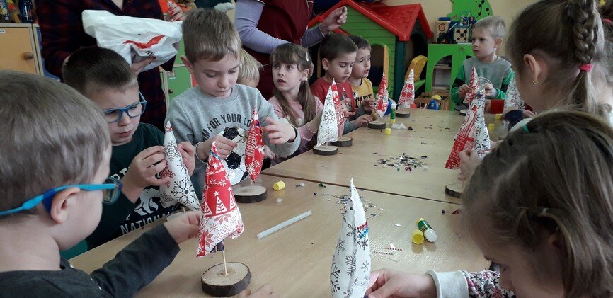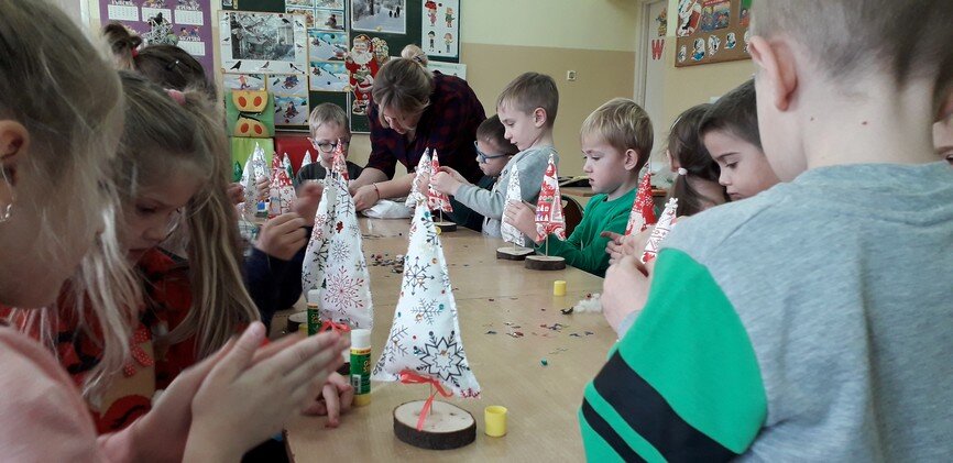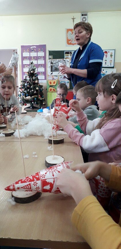 9 grudnia w przedszkolu odwiedziła nas pani Gosia Zakrzewska, mama Mai. Nasz gość wprowadził nas w magiczną atmosferę świąt i wspólnie z nim dzieci z przedszkola i oddziału przedszkolnego tworzyły piękne choinki.