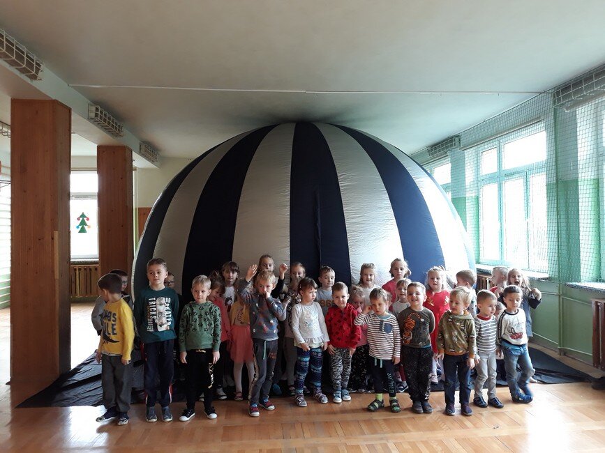 11 grudnia do naszej szkoły zawitało mobilne planetarium. Dzieci z przedszkola i oddziału przedszkolnego uczestniczyły w seansie edukacyjnym w specjalnej kopule o średnicy 5 m i wysokości 3m.