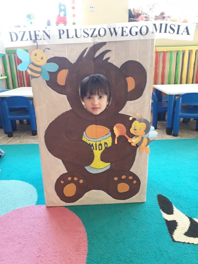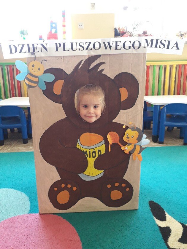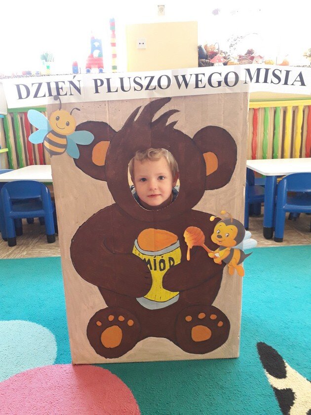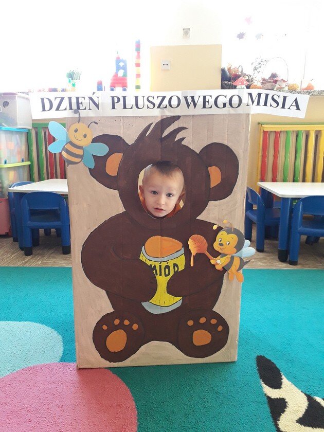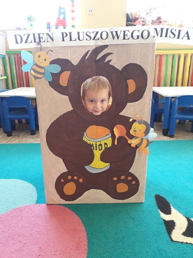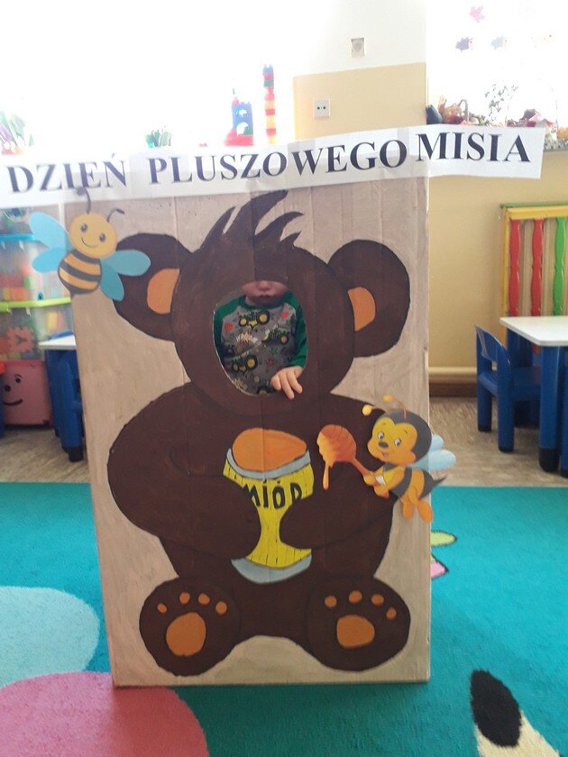 Pomimo to, dzień ten był znakomitą okazją, aby przybliżyć przedszkolakom literaturę, której bohaterami są misie, a także podstawowe wiadomości na ich temat. Dzień ten był bardzo radosny i wyjątkowy. Dzieci śpiewały, tańczyły i wesoło podskakiwały w rytm "misiowych " piosenek. Na koniec wszyscy mogli zrobić sobie zdjęcie w misiowej fotobudce. Wszystkie dzieci, za wykonanie misiowych maseczek, otrzymały pamiątkowe dyplomy.